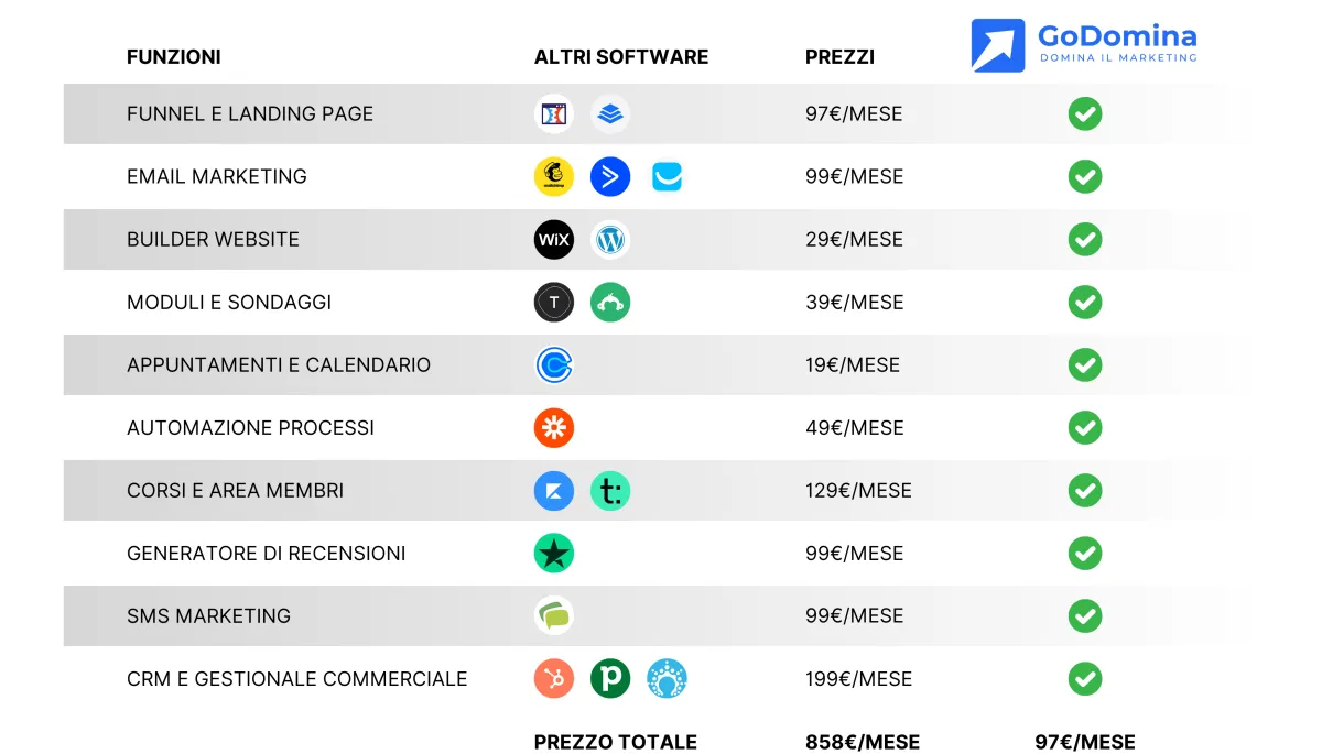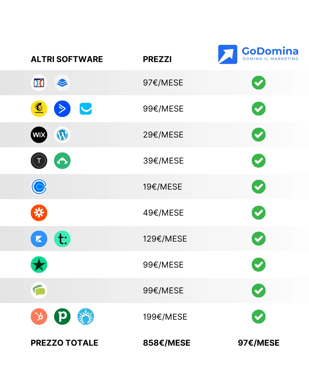 GoDomina è la piattaforma all-in-one in assoluto che ti fornirà gli strumenti, il supporto e le risorse di cui hai bisogno per avere successo e raggiungere i tuoi obiettivi di marketing.